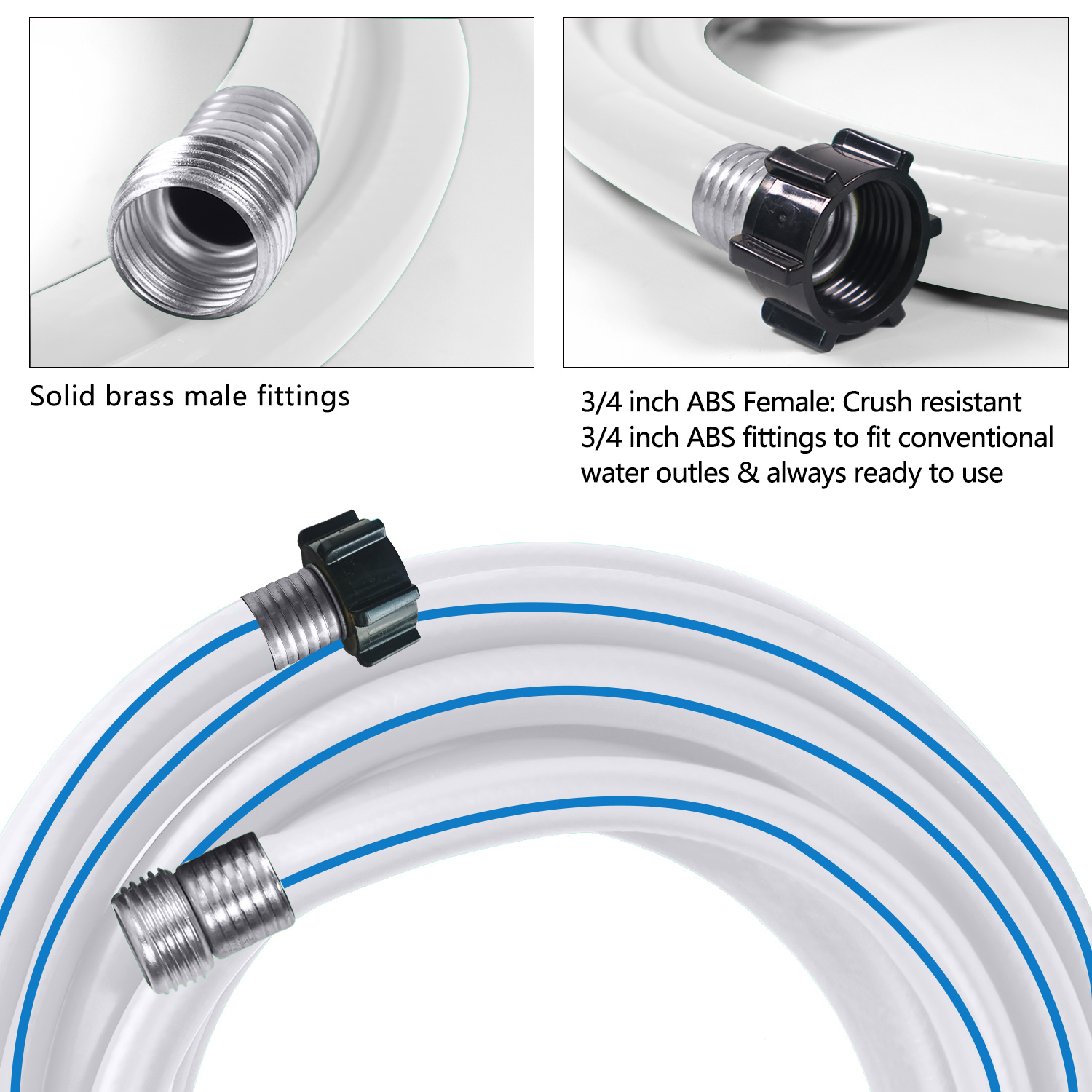 Product Features: Drinking water safe lead free About this item:The perfect hose to have on your next boating or camping trip, the element RV&Marine drinking water hose is equipped for tasks both big and small. Boasting a powerful burst strength , this durable and flexible RV water hose features crush-proof stainless- steel couplings. Water hose is drinking water safe and meets the lead-free standard under the federal Safe Drinking Water Act, as well as California’s strict standards on phthalate content so you can safely use this hose as a potable water supply line.