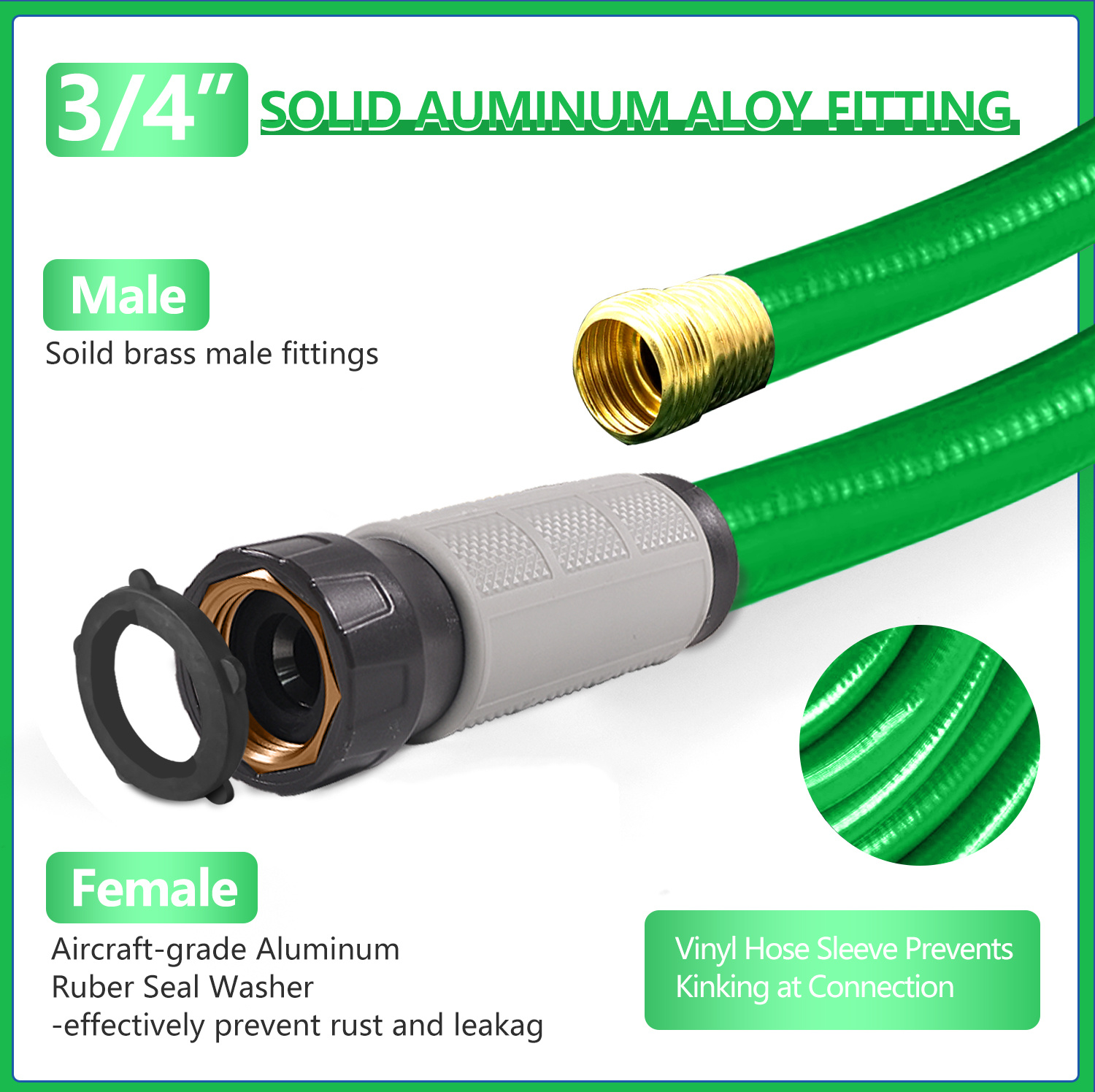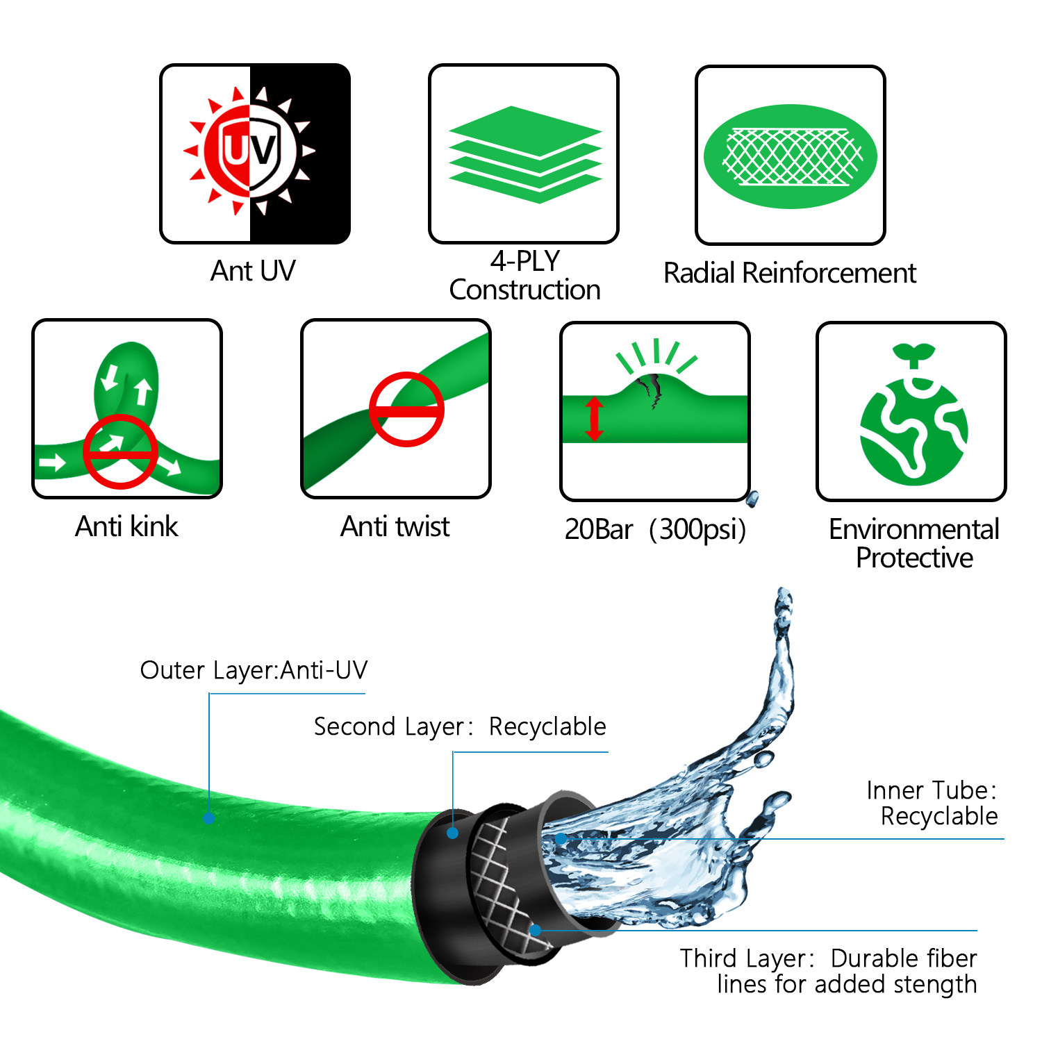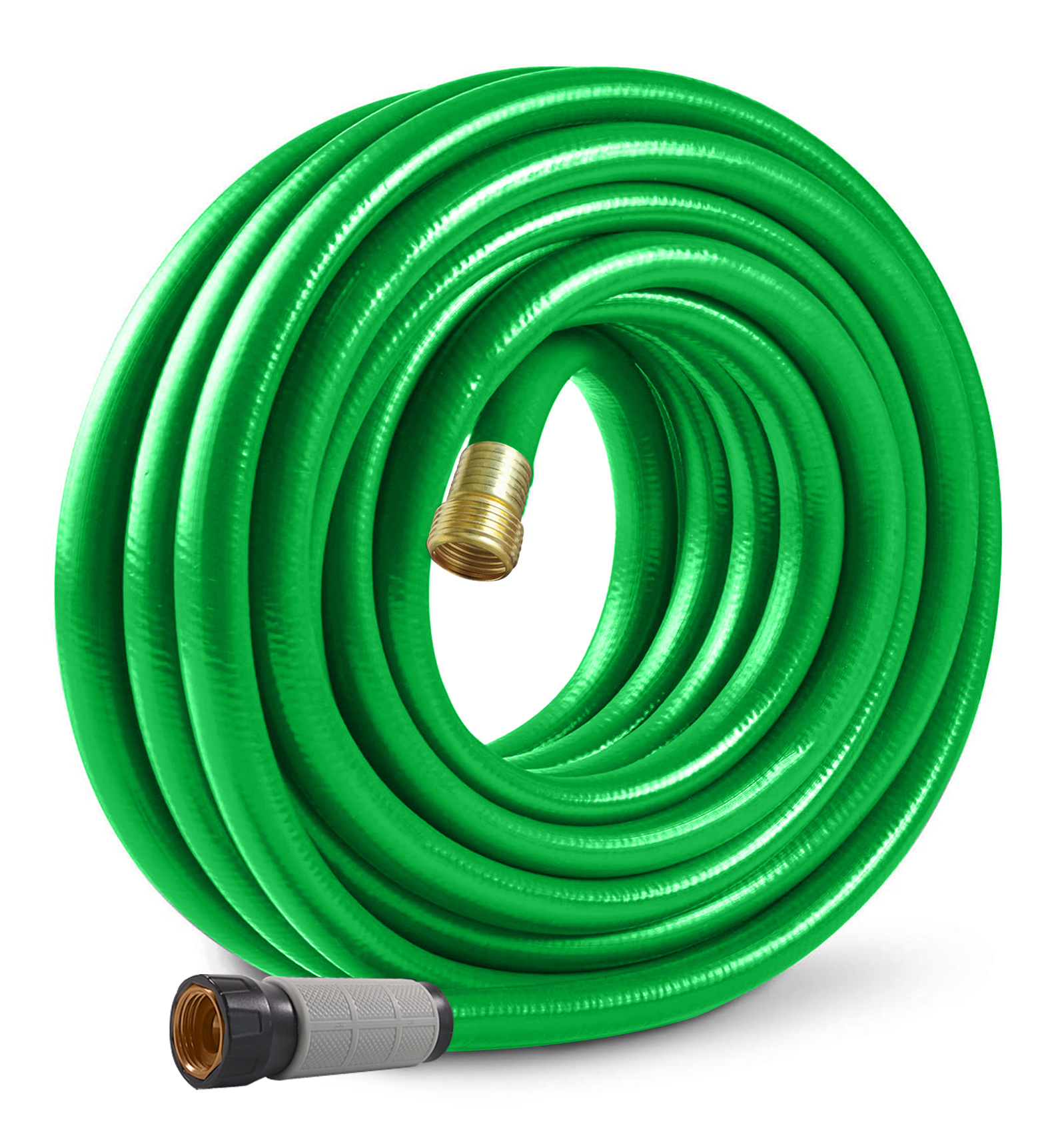 Product Features: Medium duty garden hose is a garden hose ideal for all year, medium duty use at home. Constructed with a hose armor, this garden hose has the ability to stay flexible year-round during all temperatures and allow you to use hose without adjusting and backtracking. Hose armor is kink-resistant and comes with a collar guard that prevents kinking at the spigot. Knit reinforcement in key areas allows for 300 PSI burst strength and continues flowing steady pressure water with solid brass, lead free couplings.